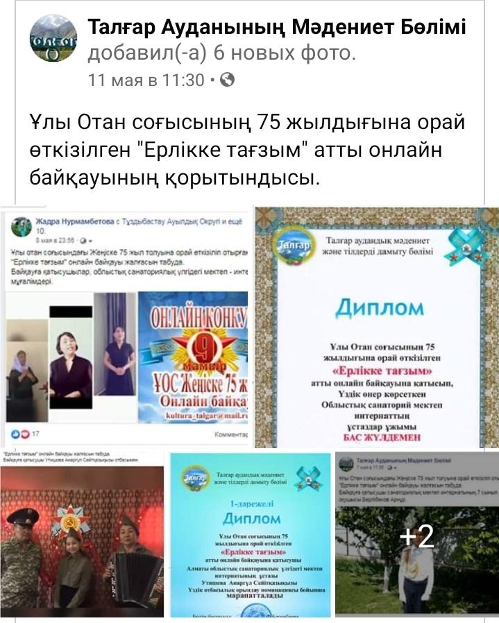 Ұлы Отан соғысының 75 жылдығына орай өткізілген "Ерлікке тағзым"атты онлайн байқауы.