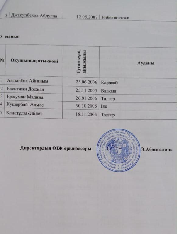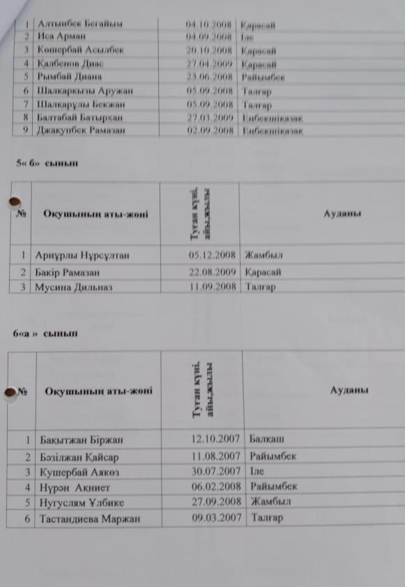 Іріктеу комиссиясының қорытындысы туралы » Талғар қаласындағы облыстық мектеп-интернаты