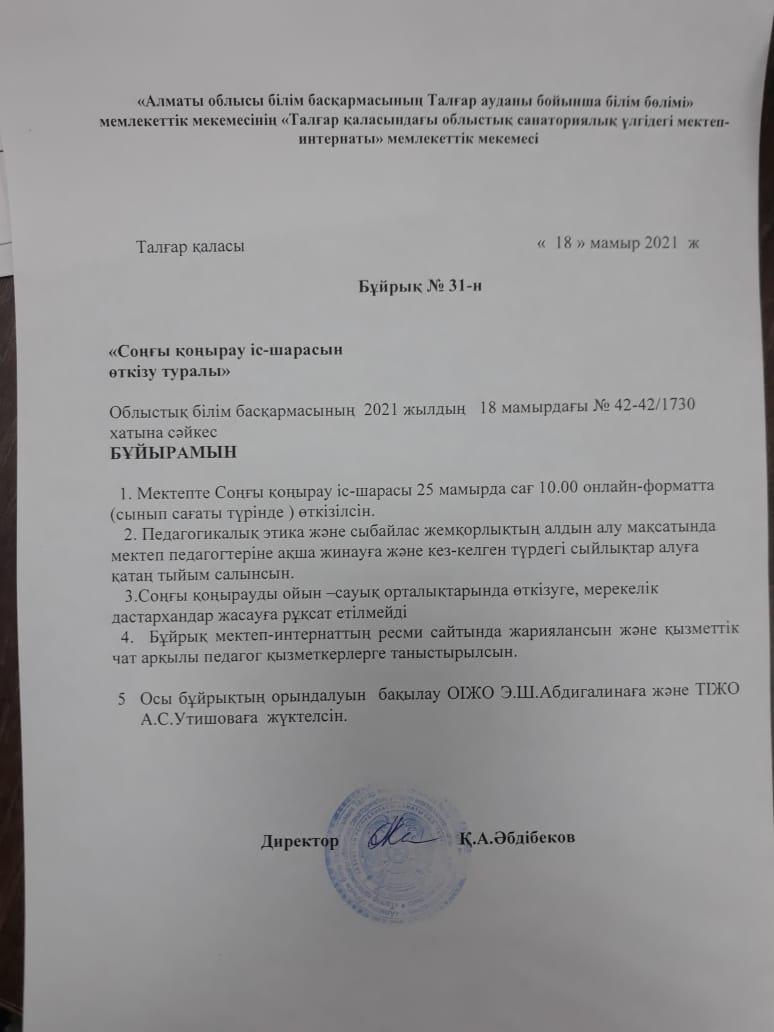 Соңғы қоңырау іс-шарасы » Талғар қаласындағы облыстық мектеп-интернаты