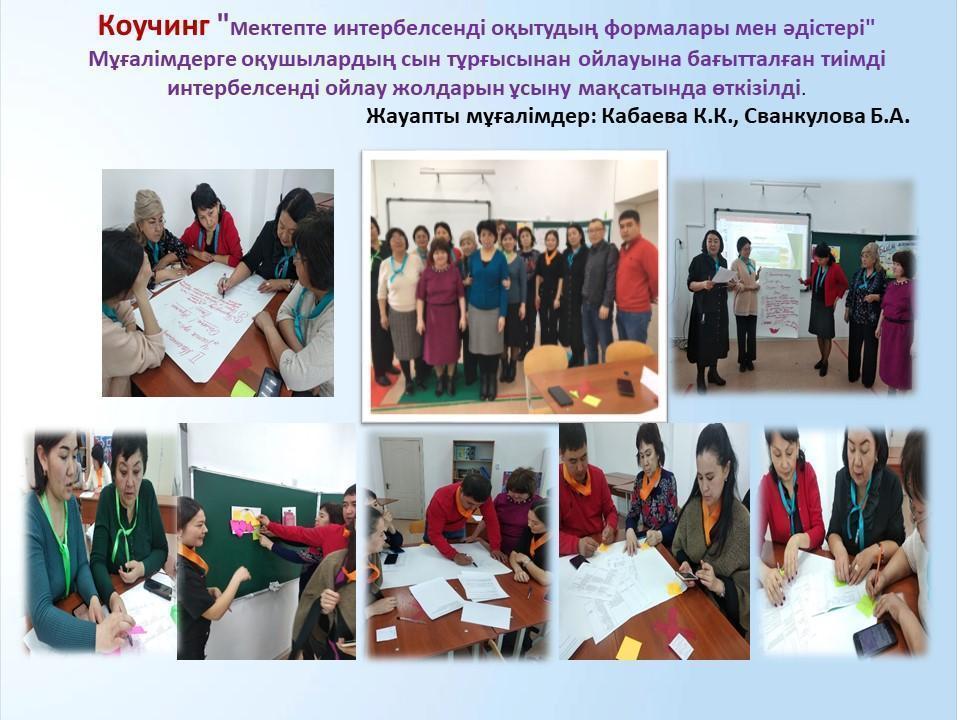 Коучинг "Мектепте интербелсенді оқытудың формалары мен әдістері"