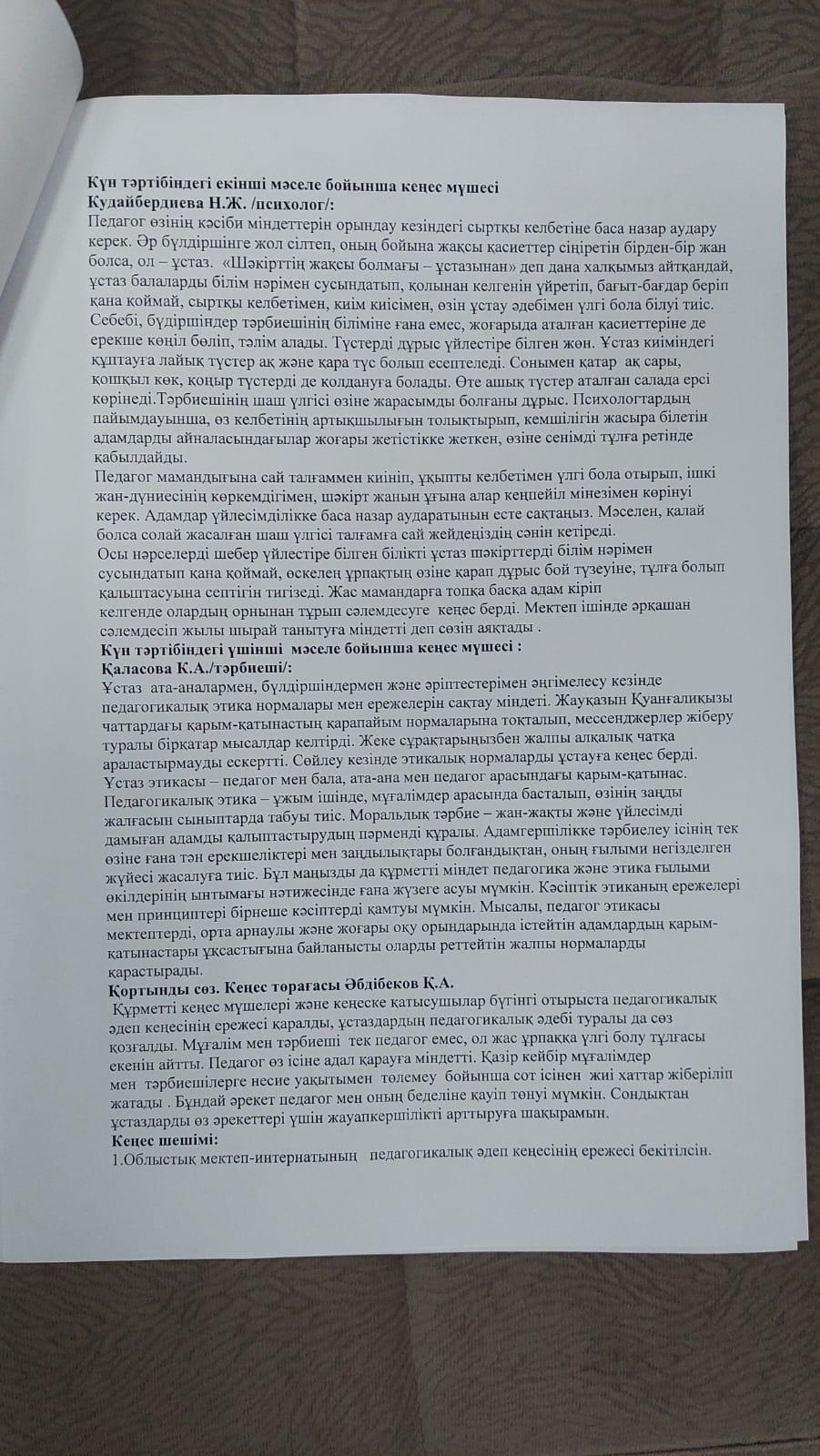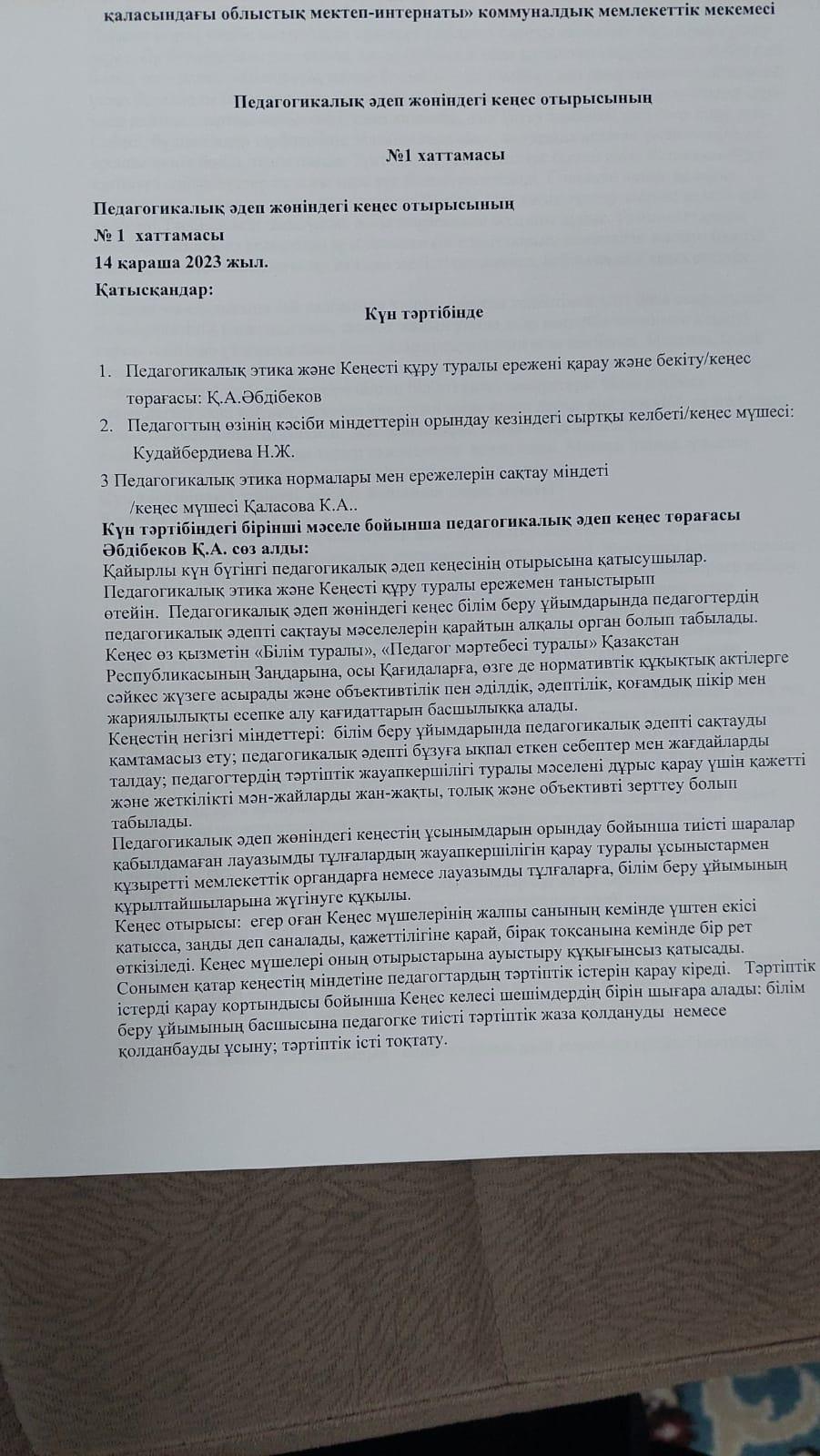 04 қыркүйек 2023 0 1 2 3 4 5 "Білім беру мекемесінде педагогикалық әдеп жөніндегі кеңесті құру туралы"