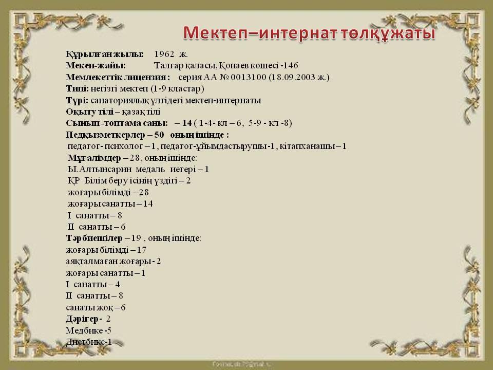 «Талғар қаласындағы облыстық санаториялық үлгідегі мектеп-интернаты"»