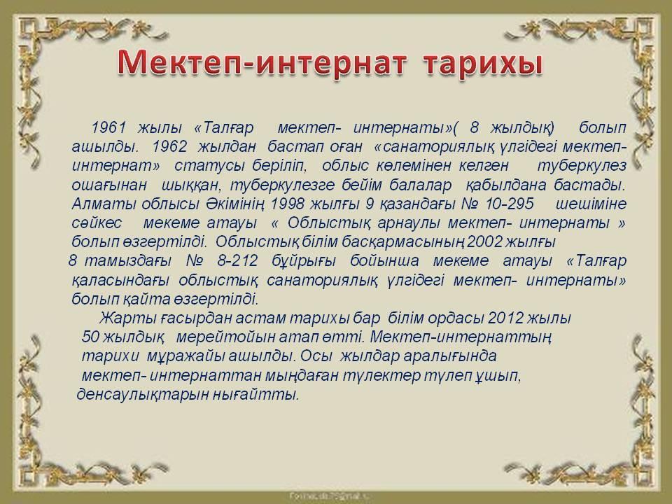 Мектеп тарихы » Талғар қаласындағы облыстық мектеп-интернаты