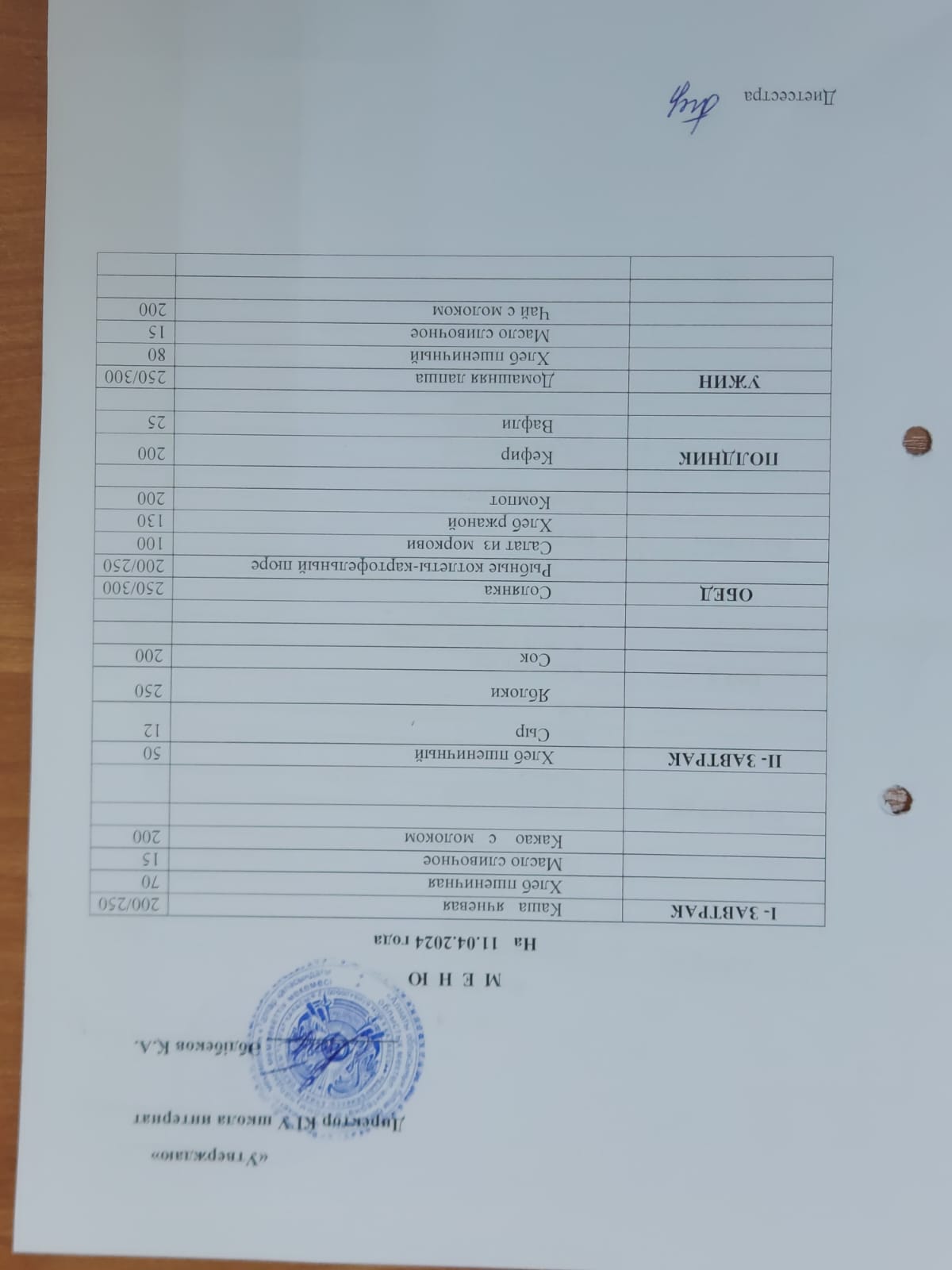 меню 8.04-14.04 » Талғар қаласындағы облыстық мектеп-интернаты