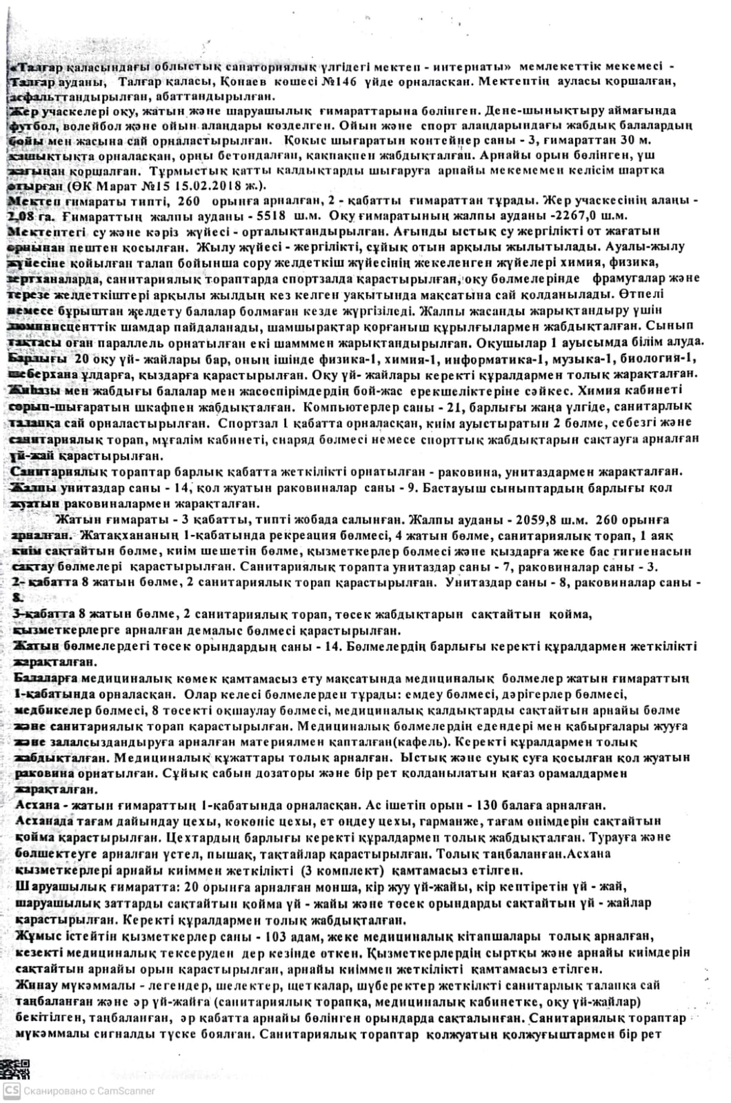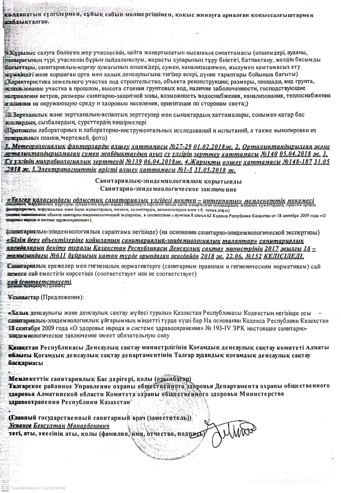 Санаториялық-эпидемиологиялық қорытынды » Талғар қаласындағы облыстық мектеп-интернаты