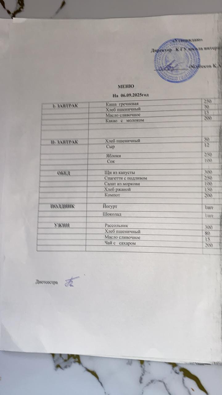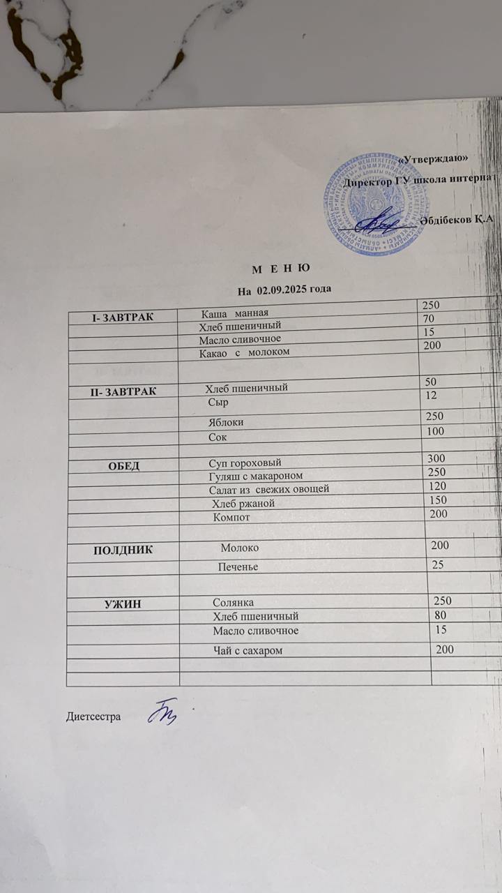 10 қараша 2024 Меню
