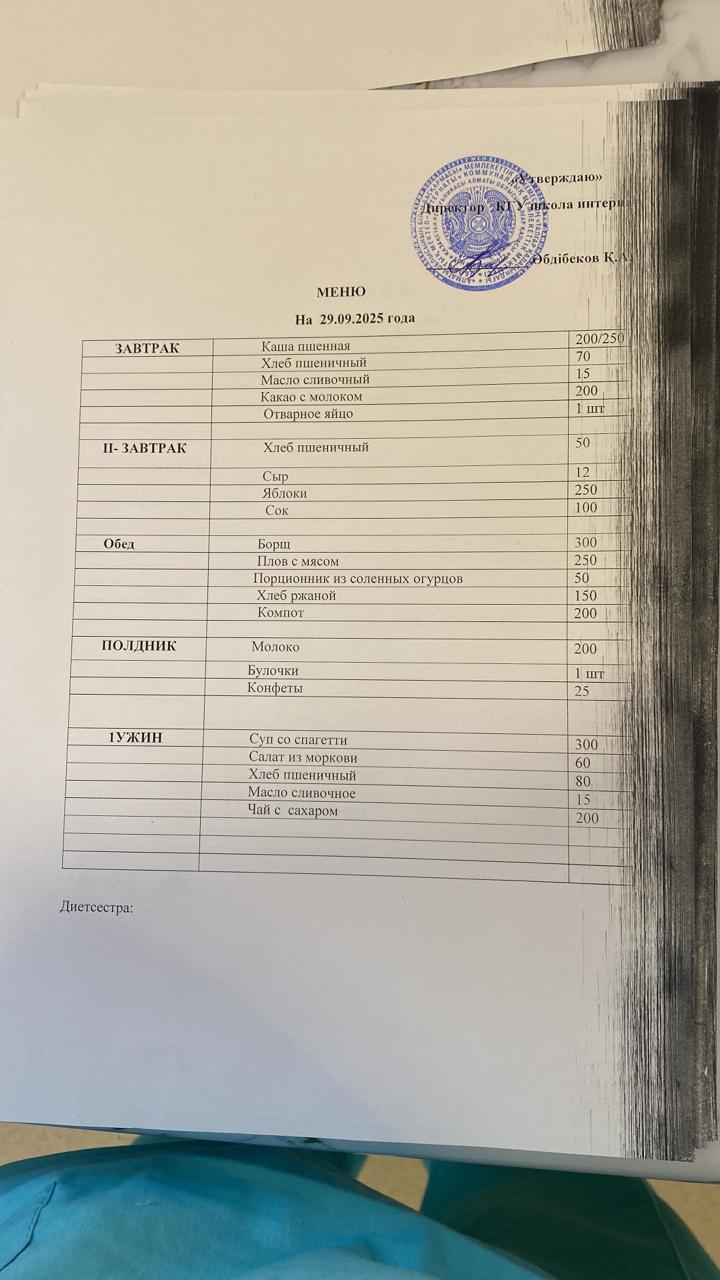 меню 29.09.25 » Талғар қаласындағы облыстық мектеп-интернаты