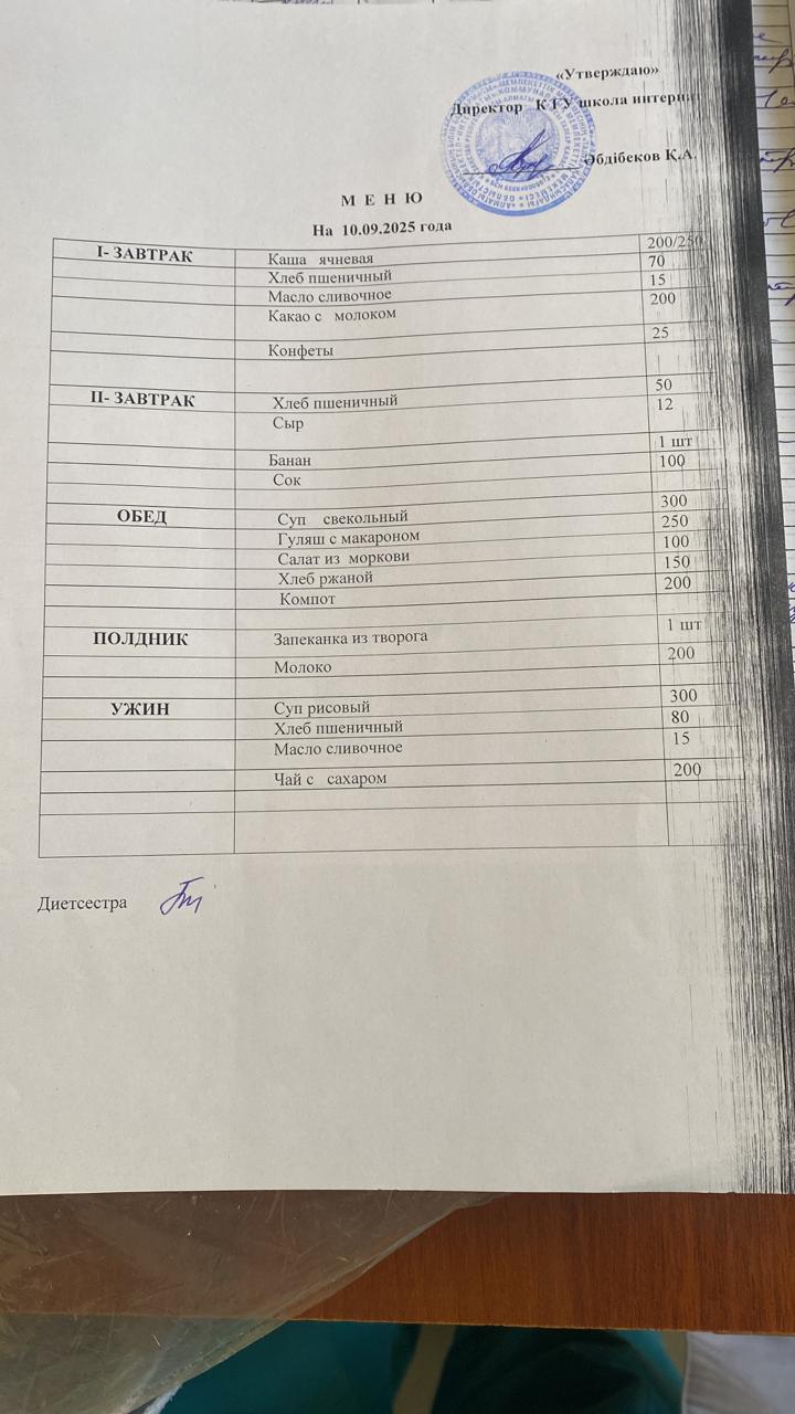 10 қараша 2024 Меню