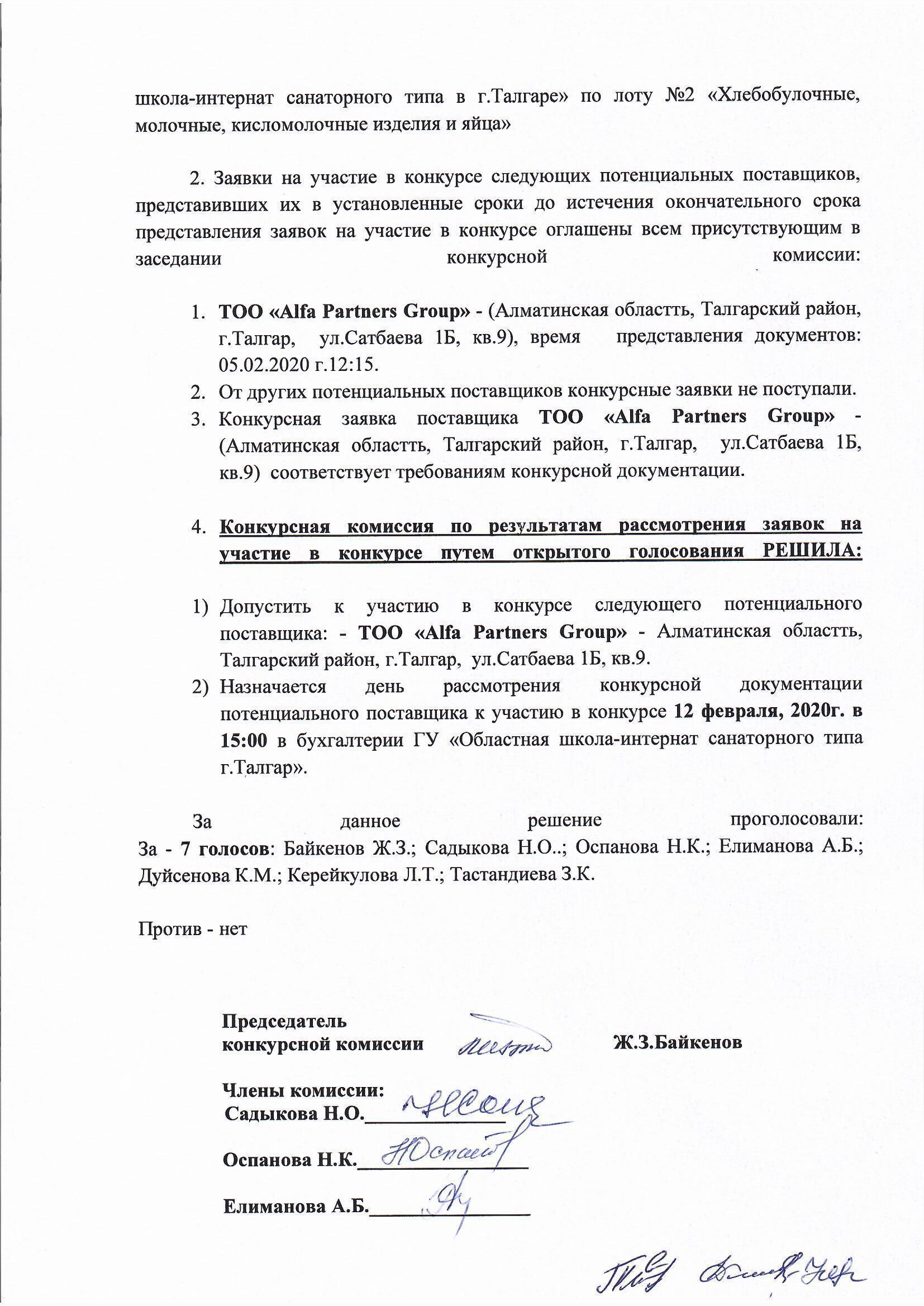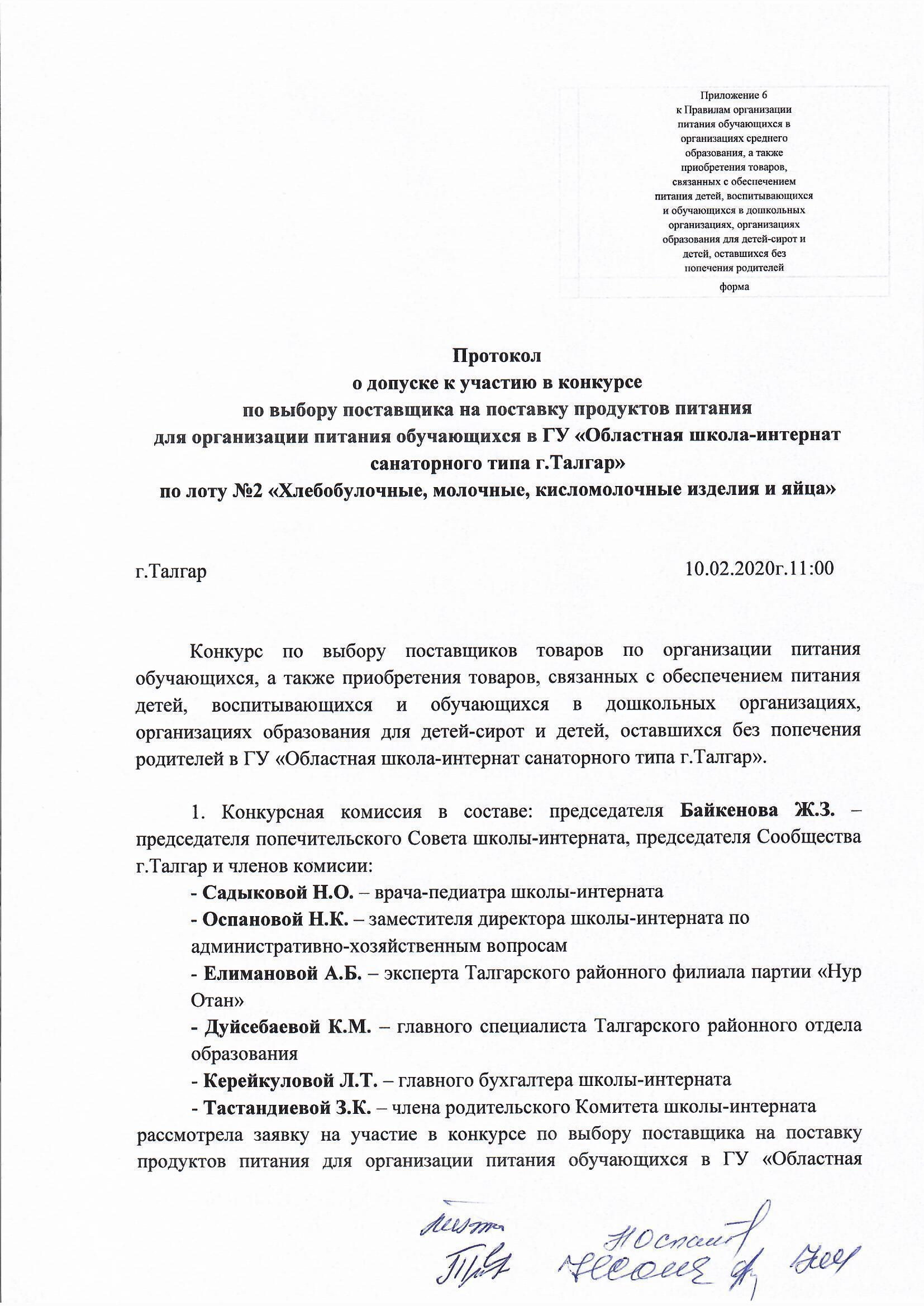 Протокол о допуске к участию в конкурсе » Талғар қаласындағы облыстық мектеп-интернаты