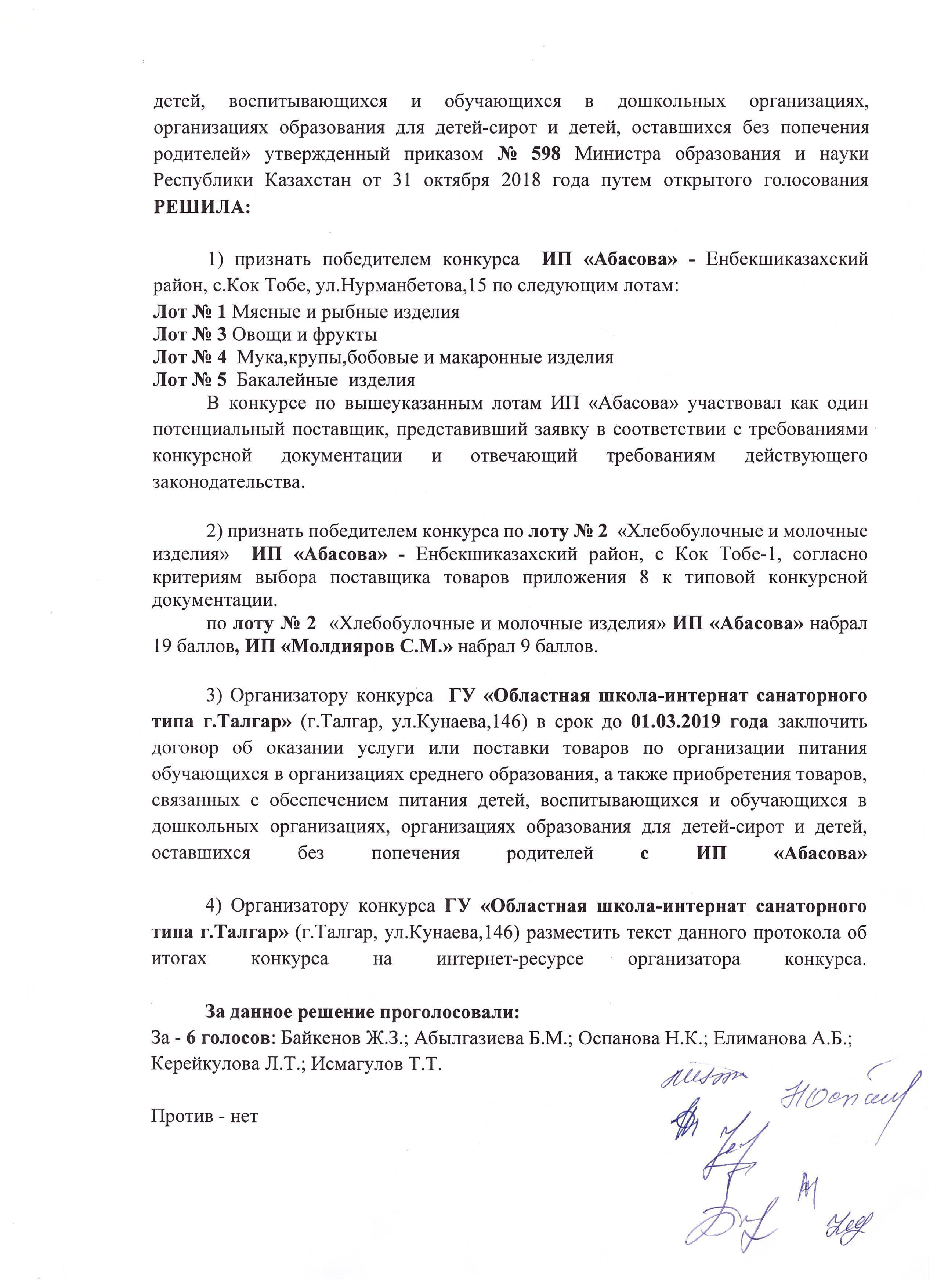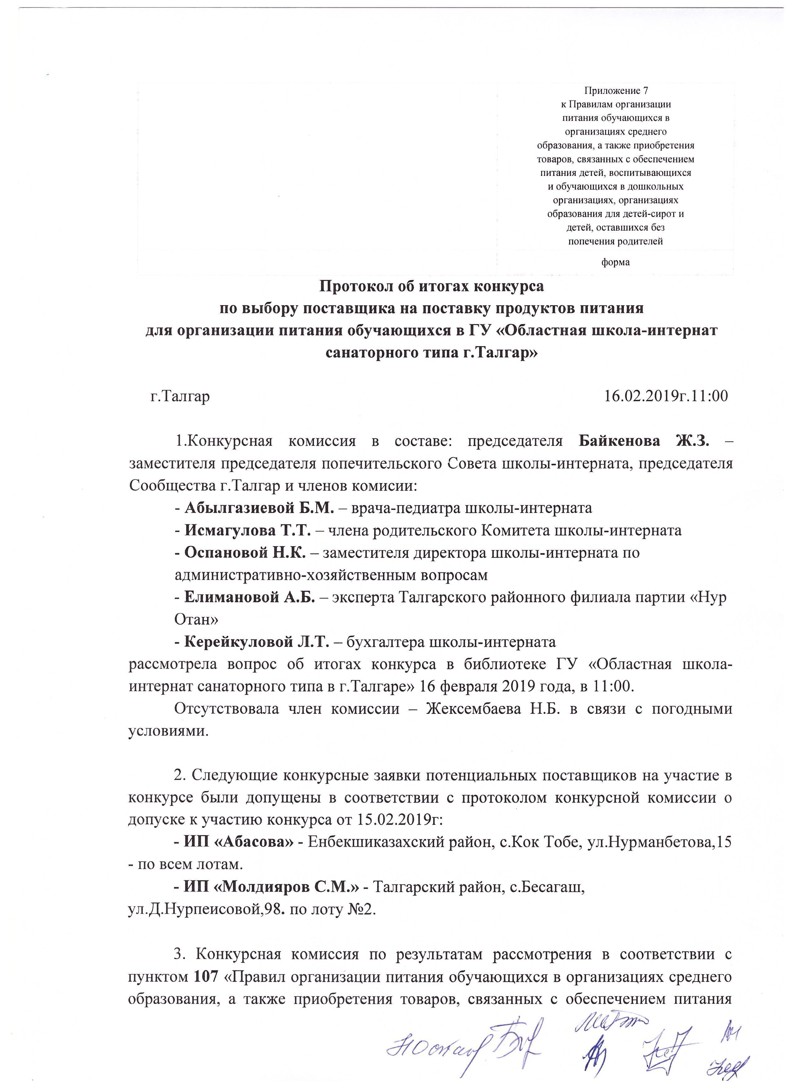 Протокол об итогах конкурса » Талғар қаласындағы облыстық мектеп-интернаты
