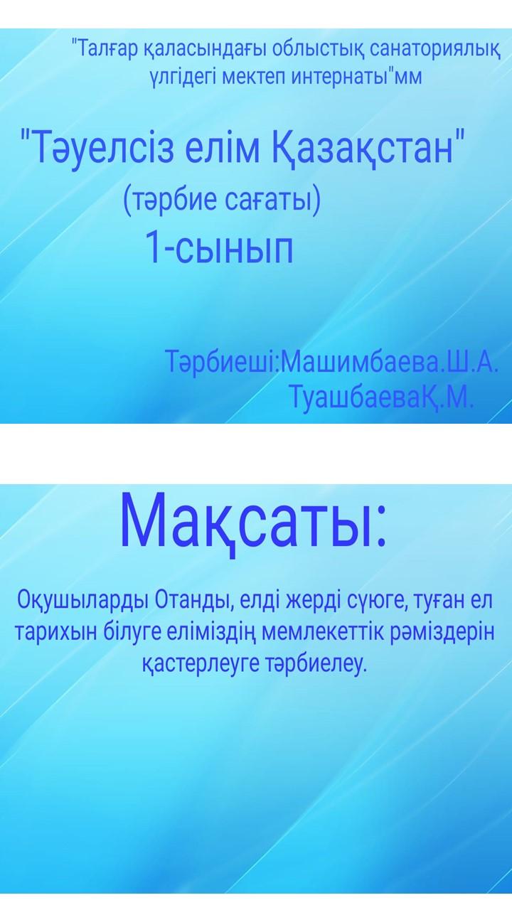 "Тәуелсіз елім Қазақстан"ашық тәрбие сағаты 1 сыныптармен