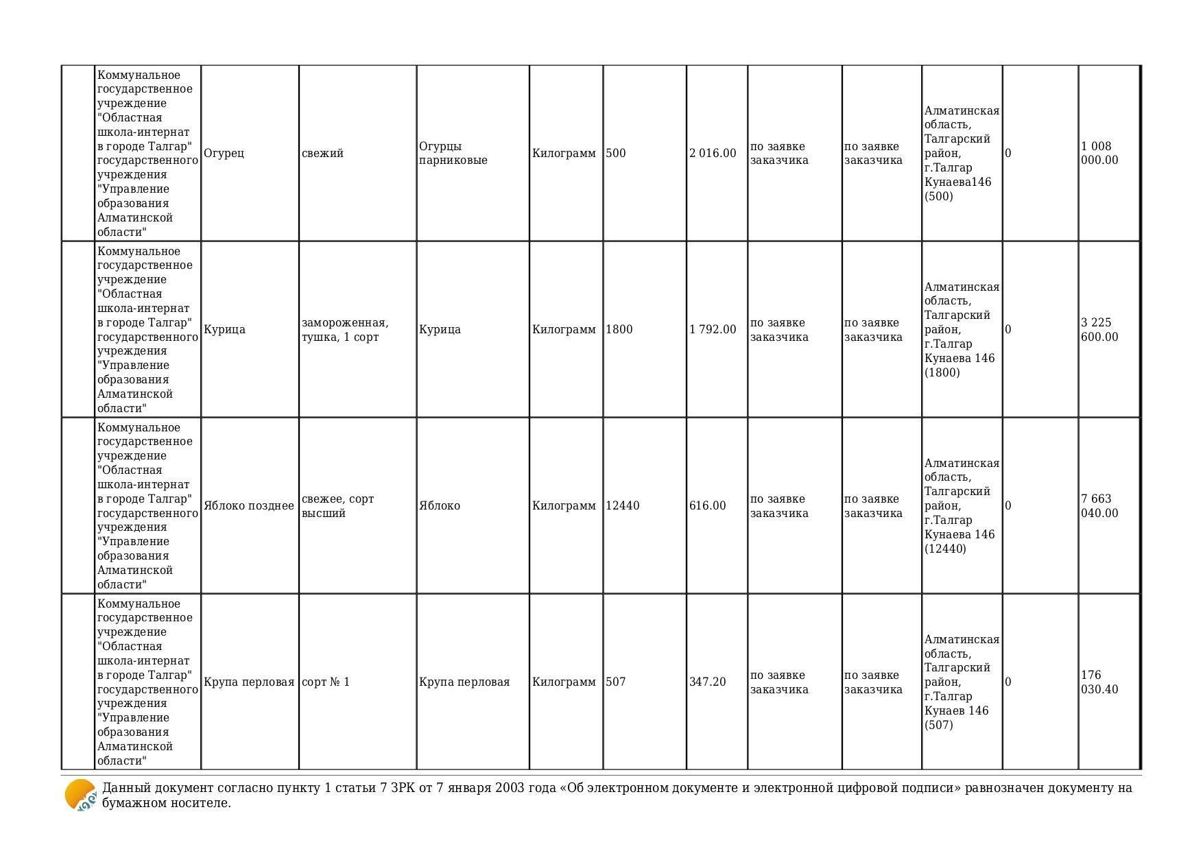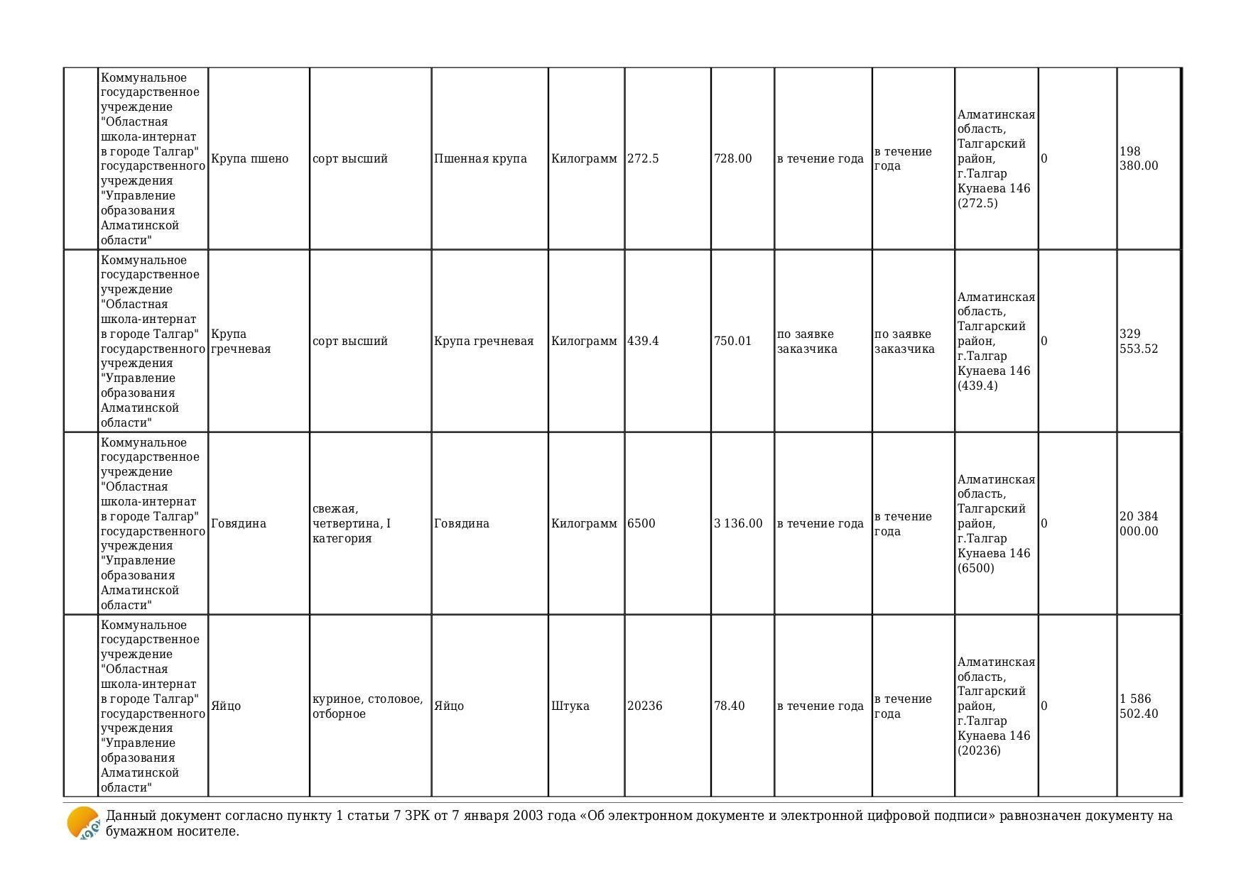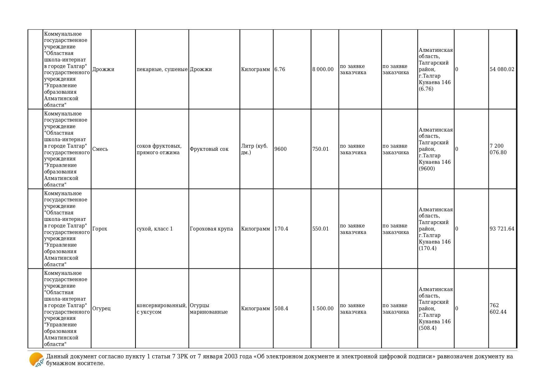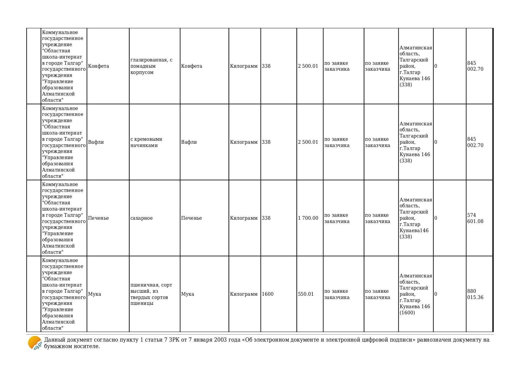 Тауарларды мемлекеттік сатып алу туралы шарт » Талғар қаласындағы облыстық мектеп-интернаты
