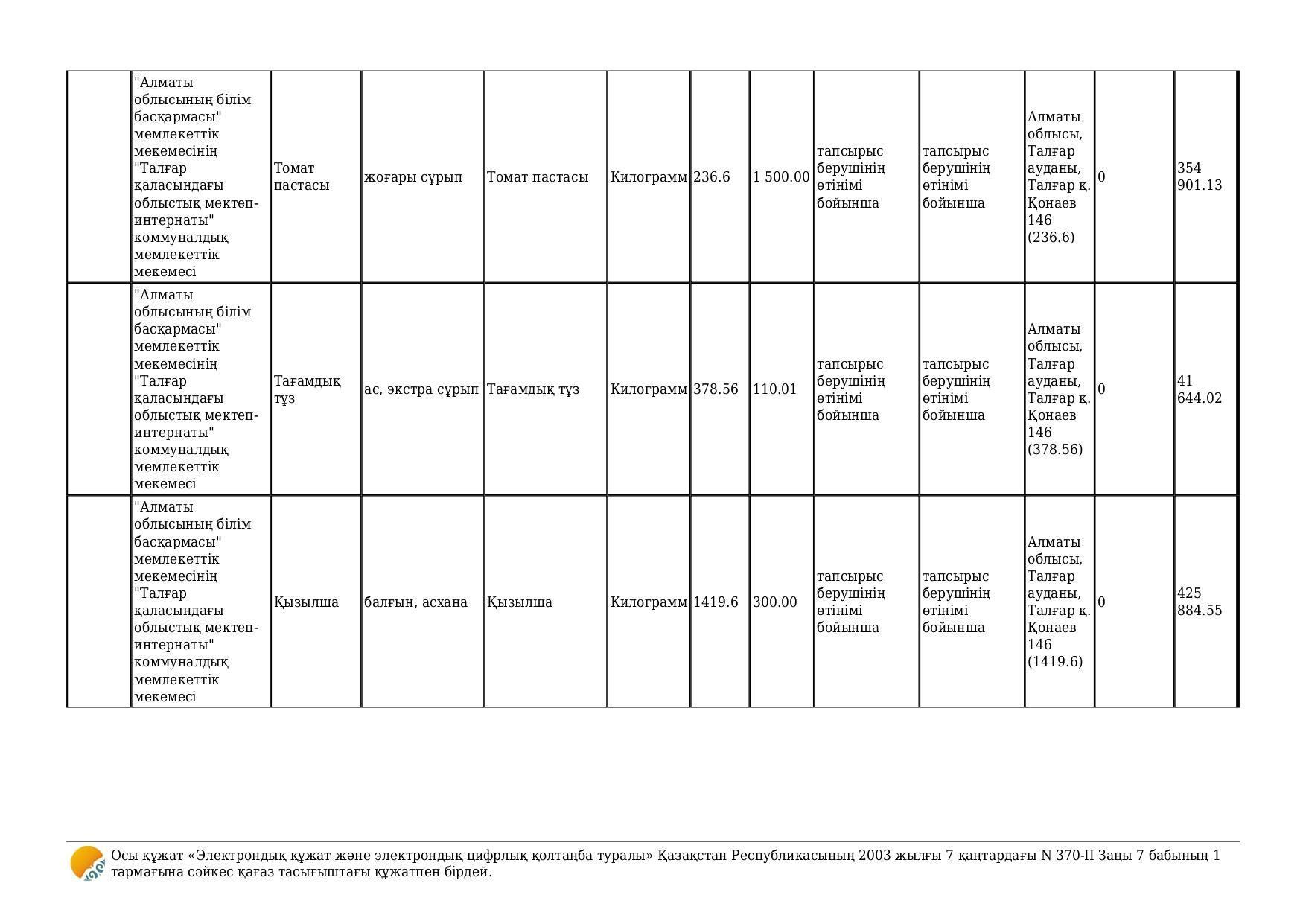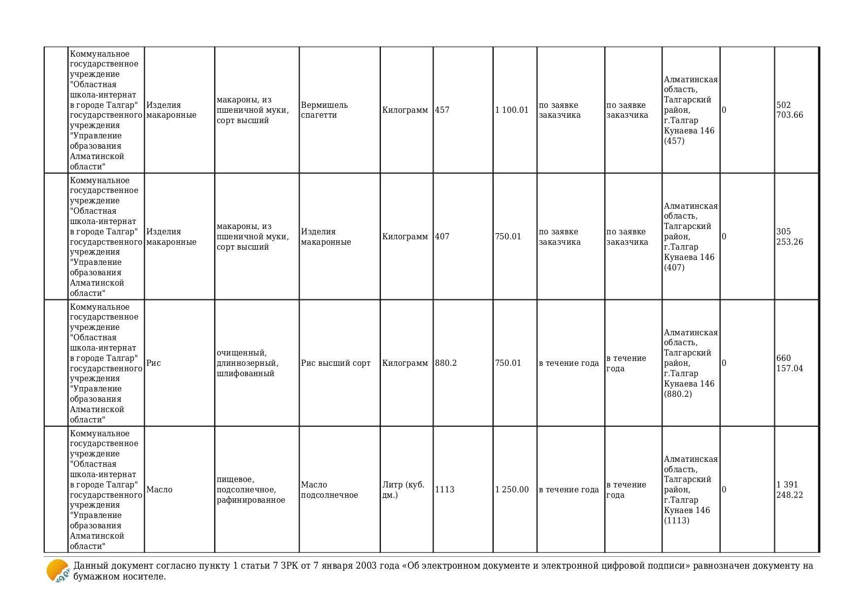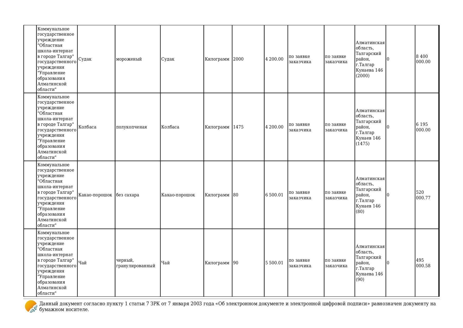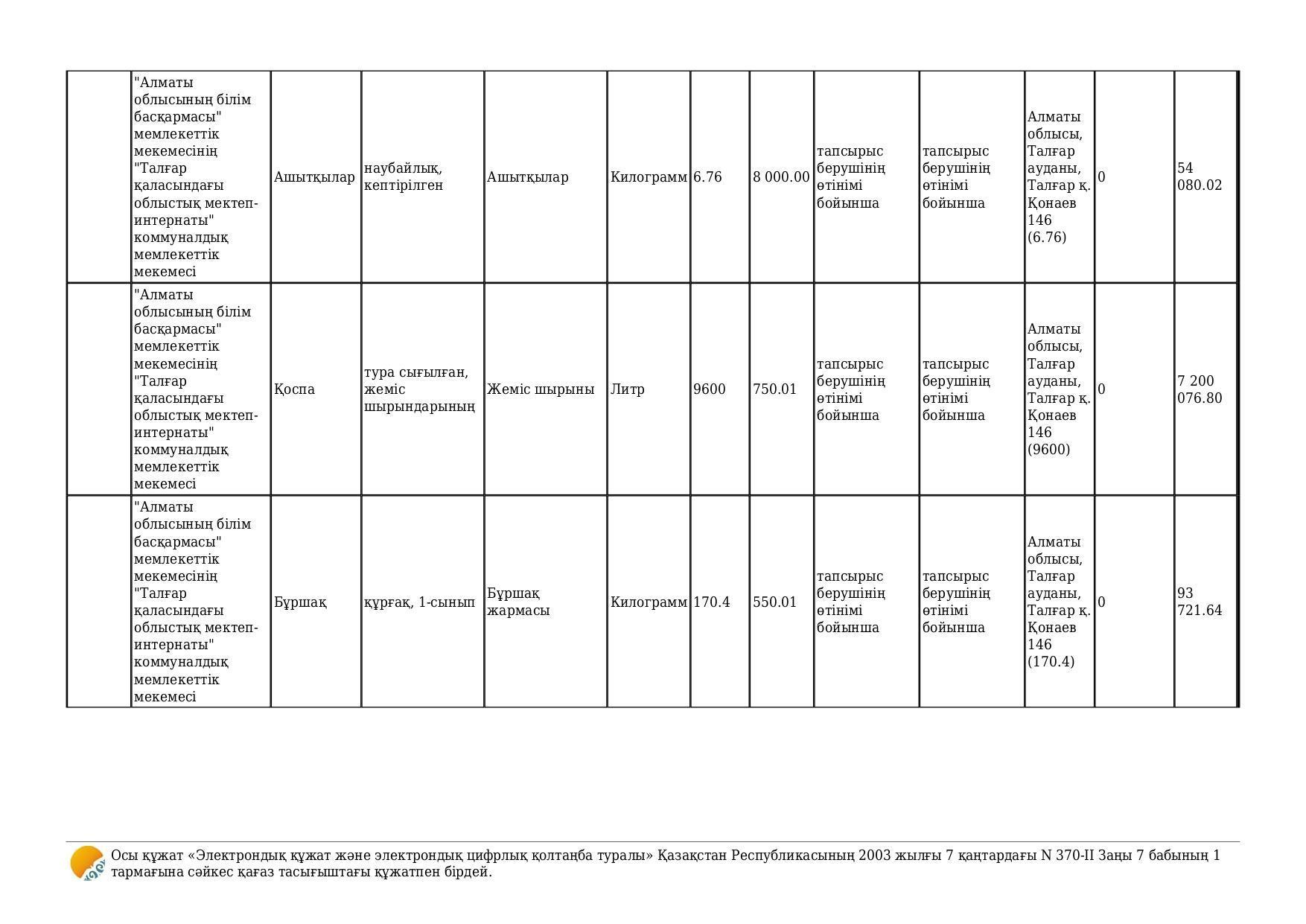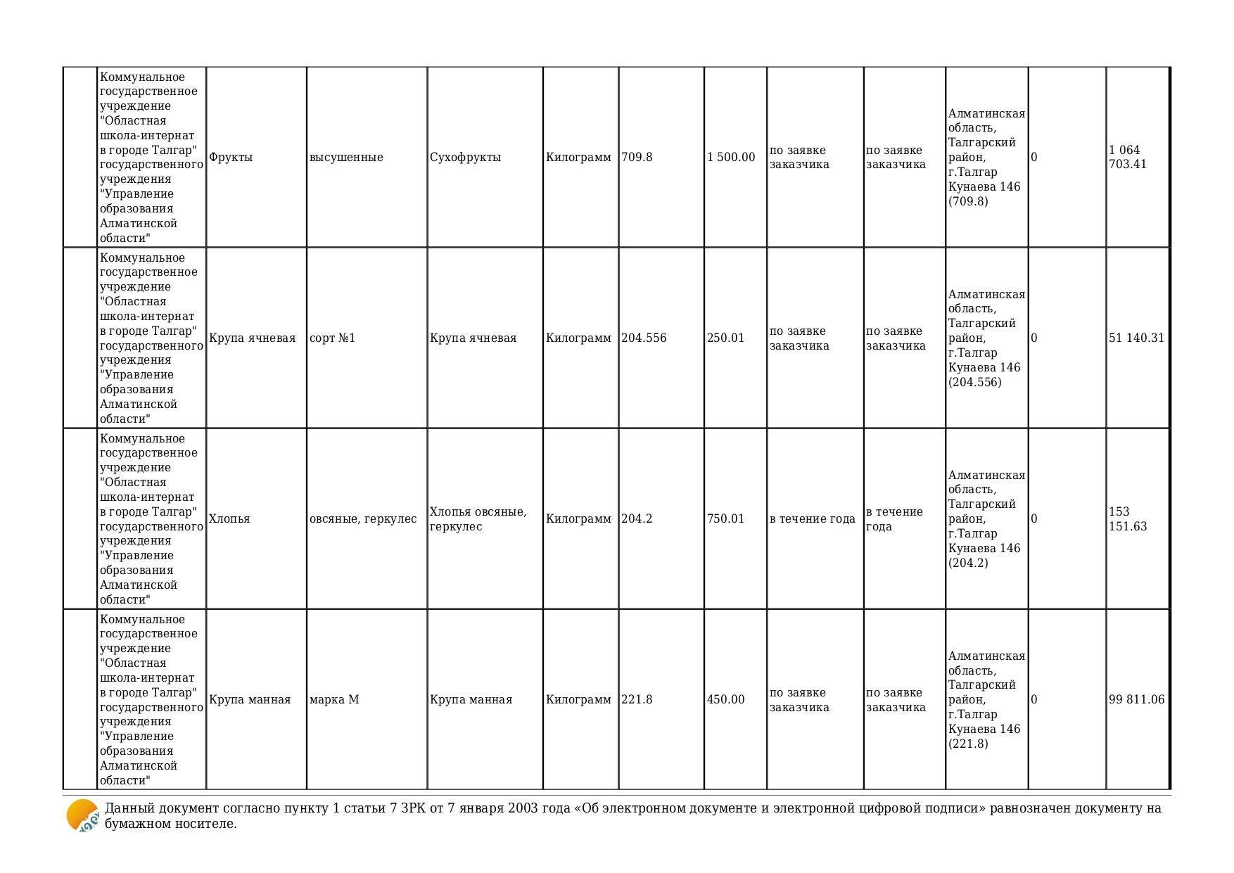 Тауарларды мемлекеттік сатып алу туралы шарт » Талғар қаласындағы облыстық мектеп-интернаты