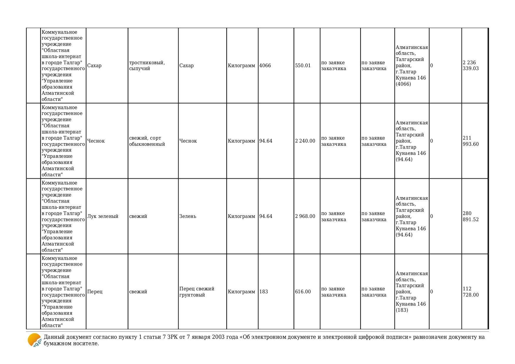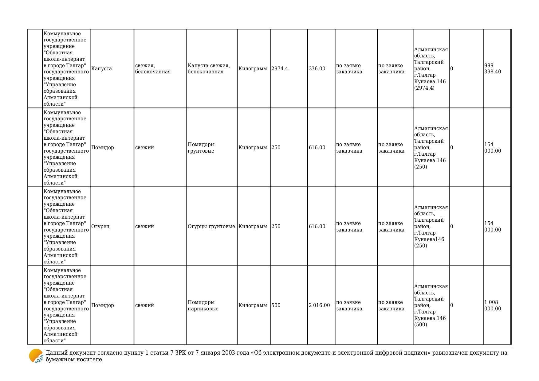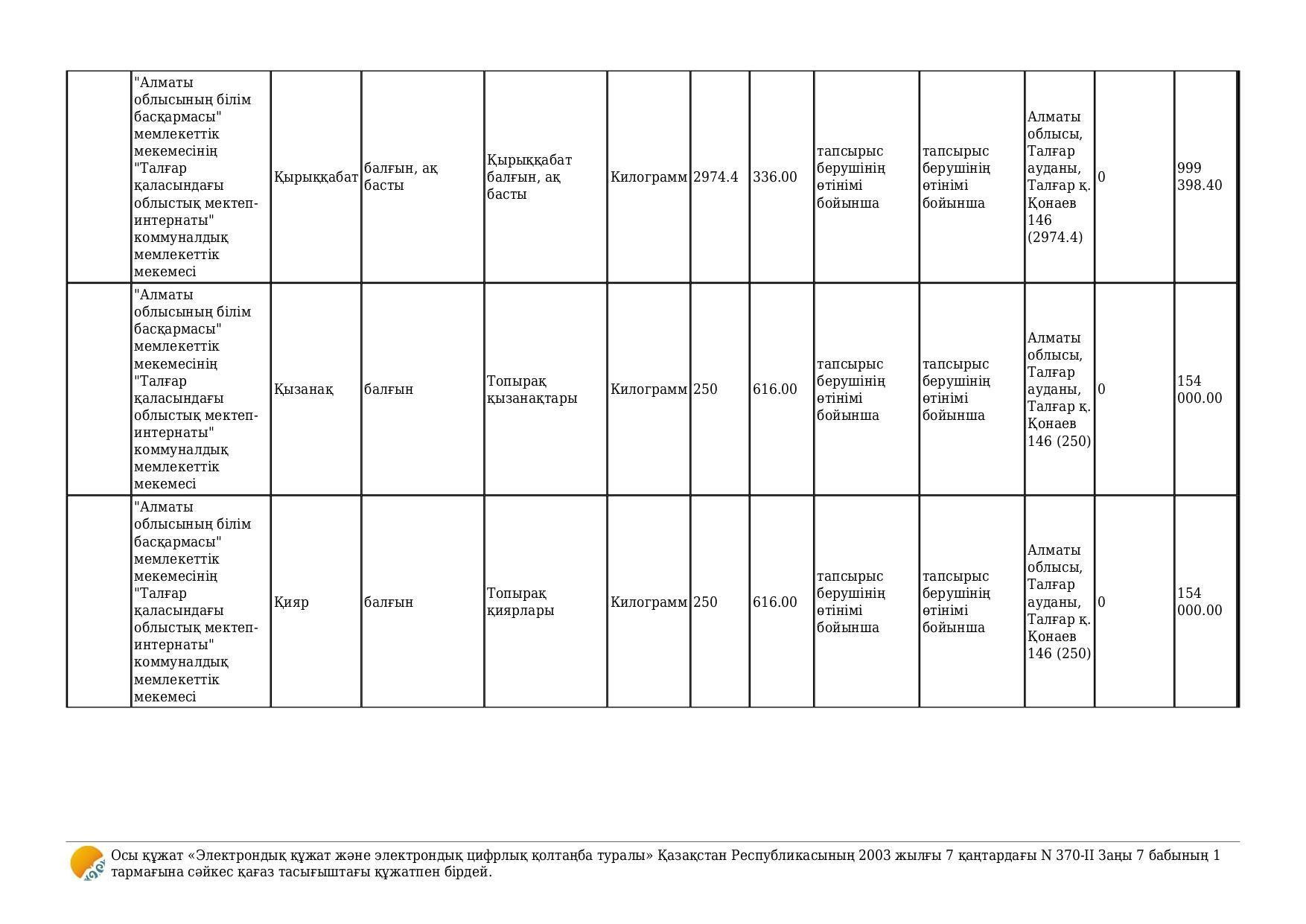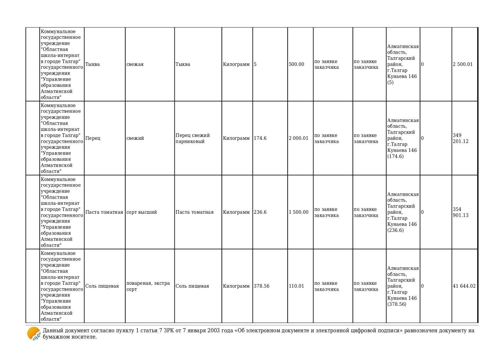 Тауарларды мемлекеттік сатып алу туралы шарт » Талғар қаласындағы облыстық мектеп-интернаты
