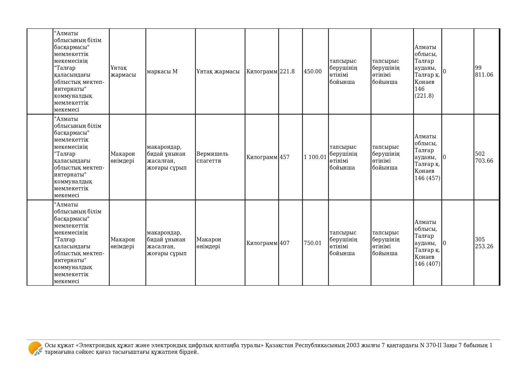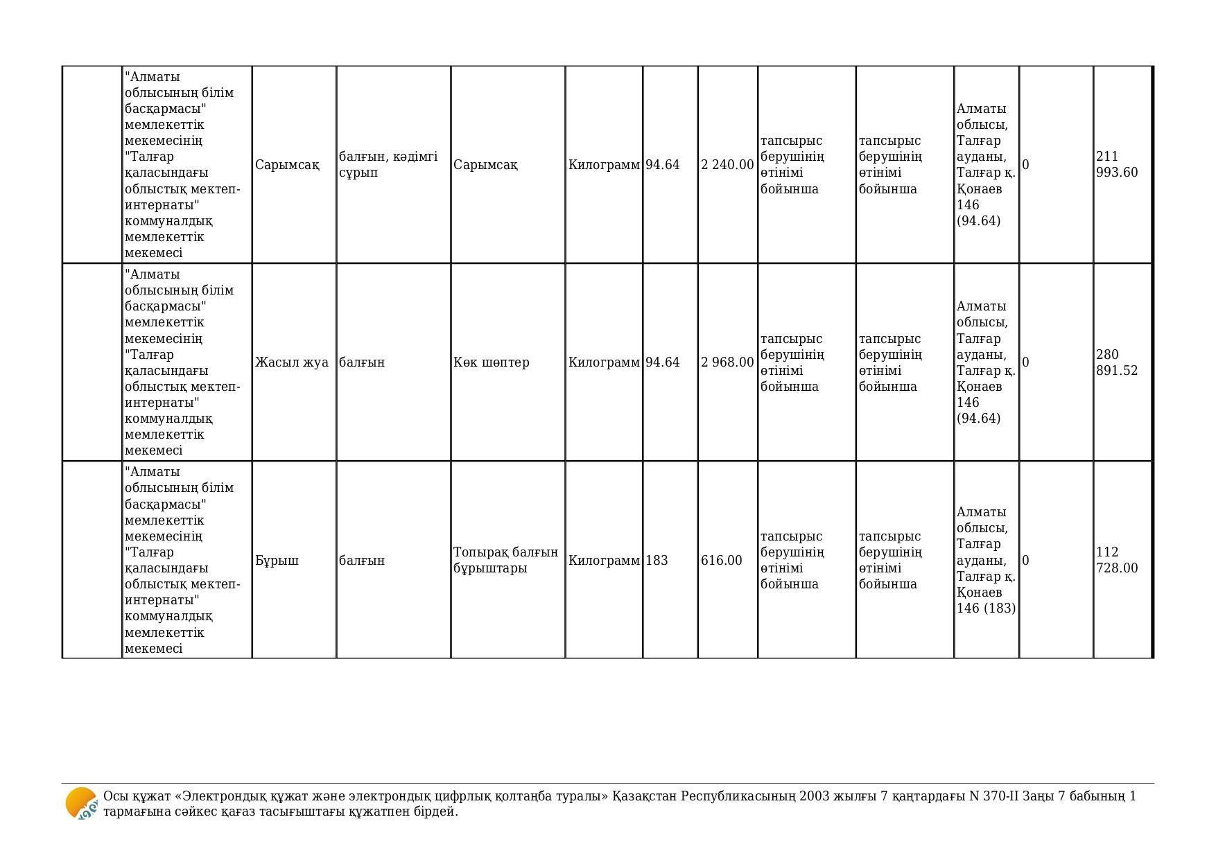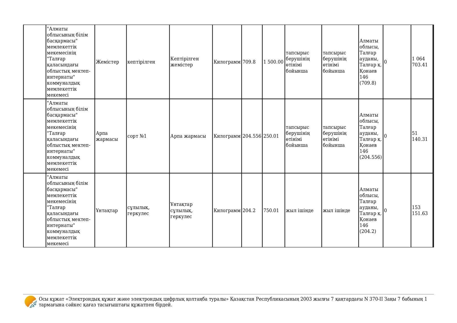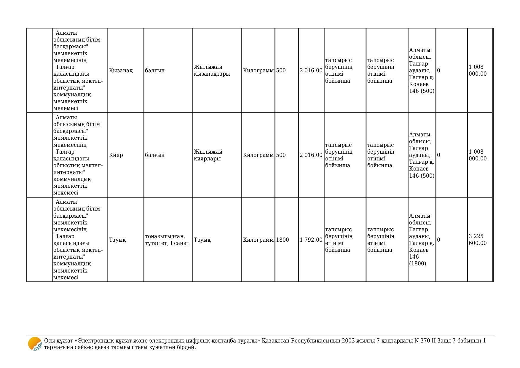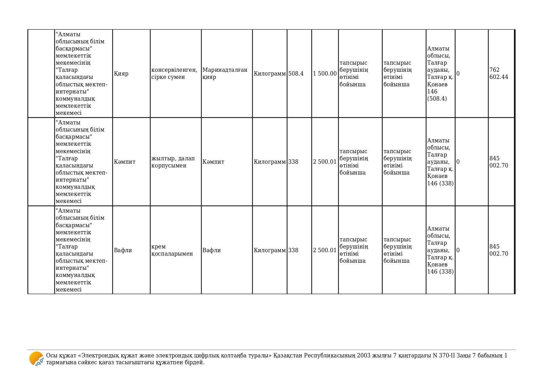 Тауарларды мемлекеттік сатып алу туралы шарт » Талғар қаласындағы облыстық мектеп-интернаты