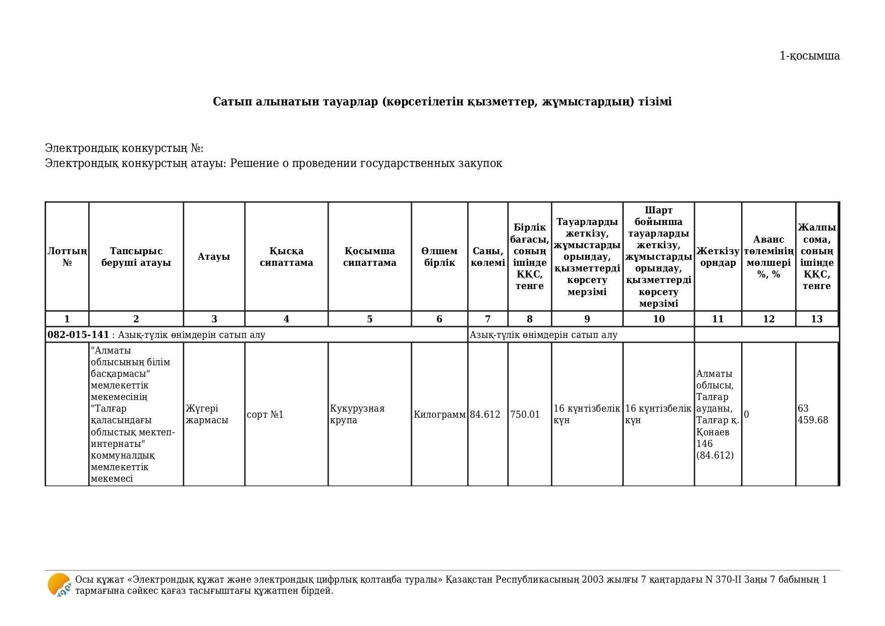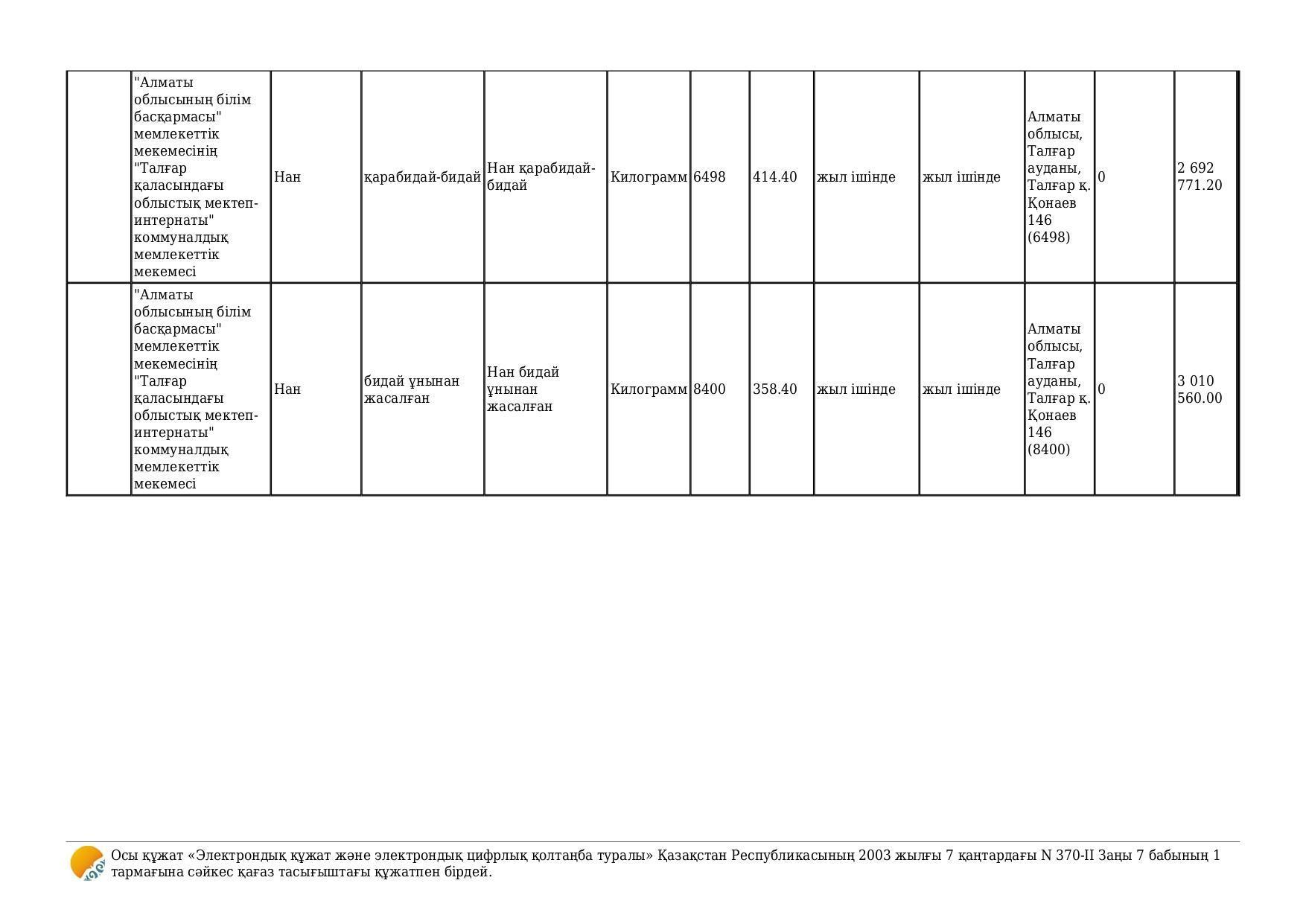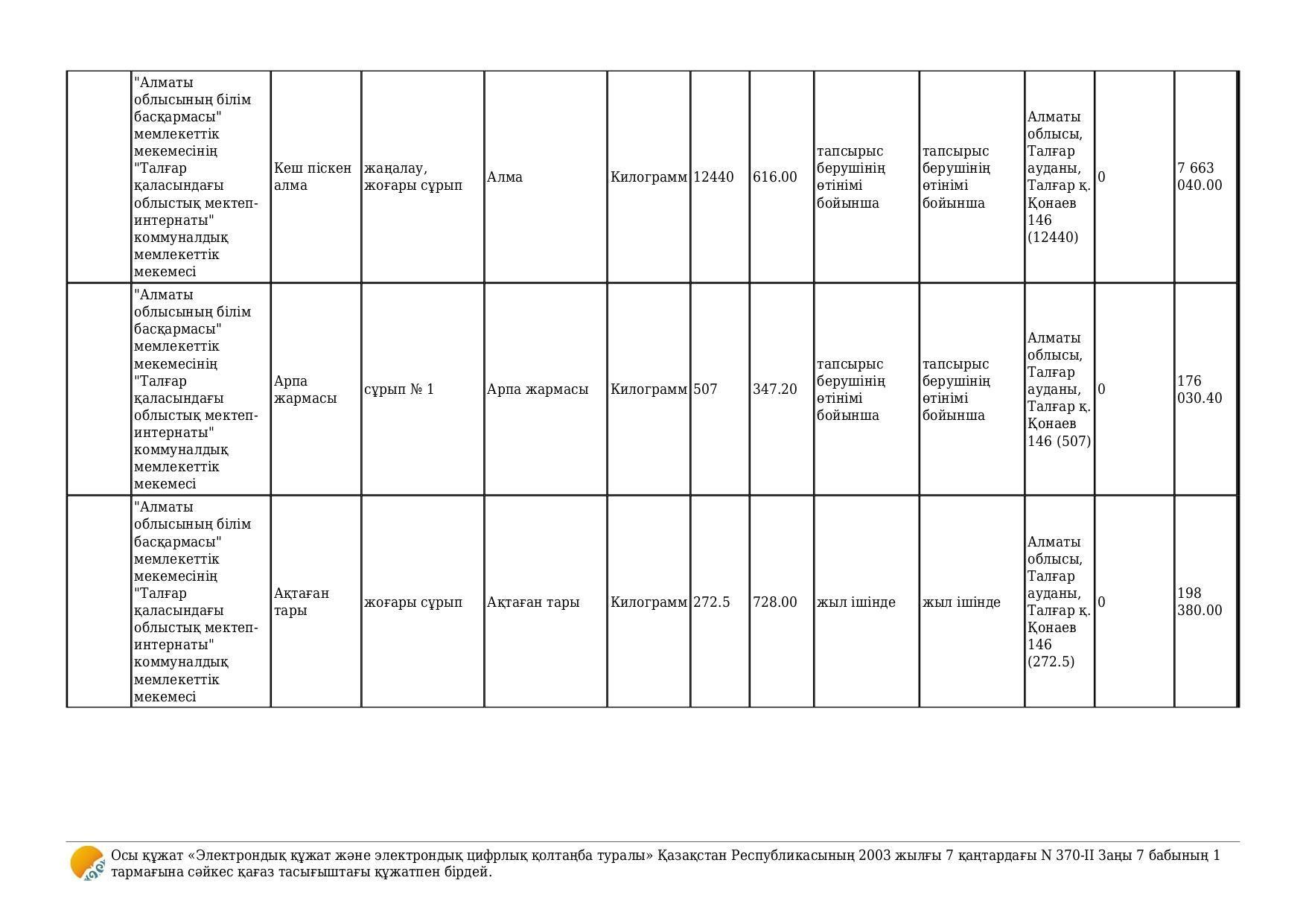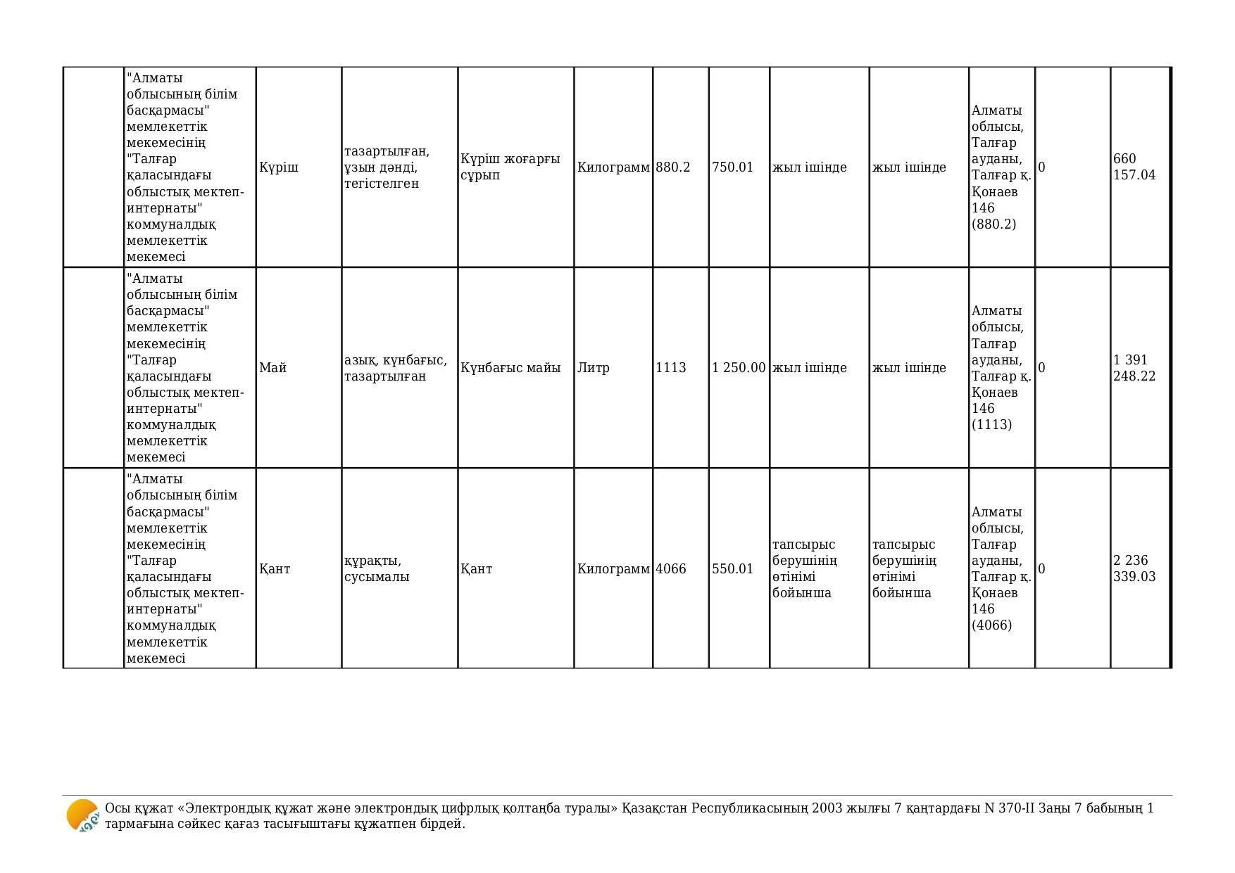Тауарларды мемлекеттік сатып алу туралы шарт » Талғар қаласындағы облыстық мектеп-интернаты