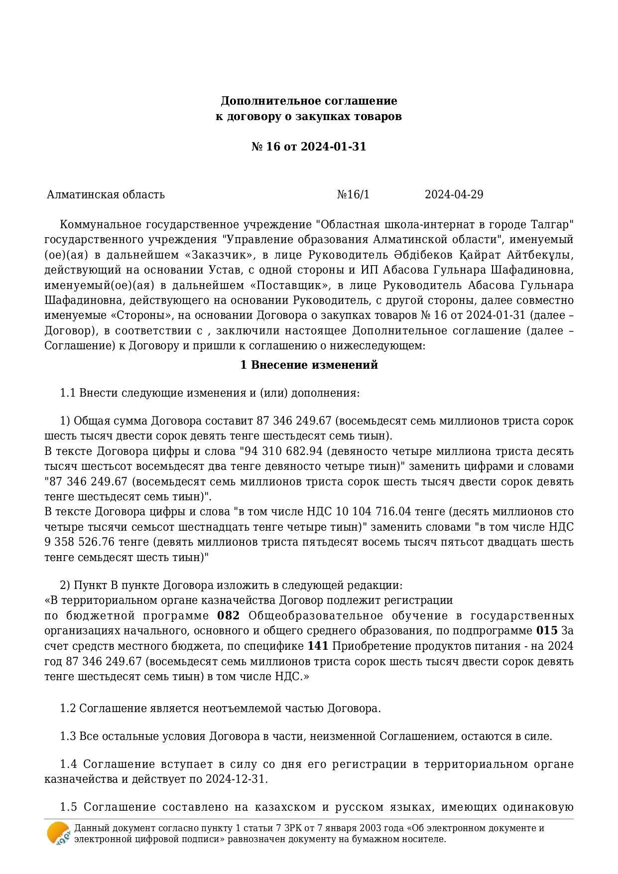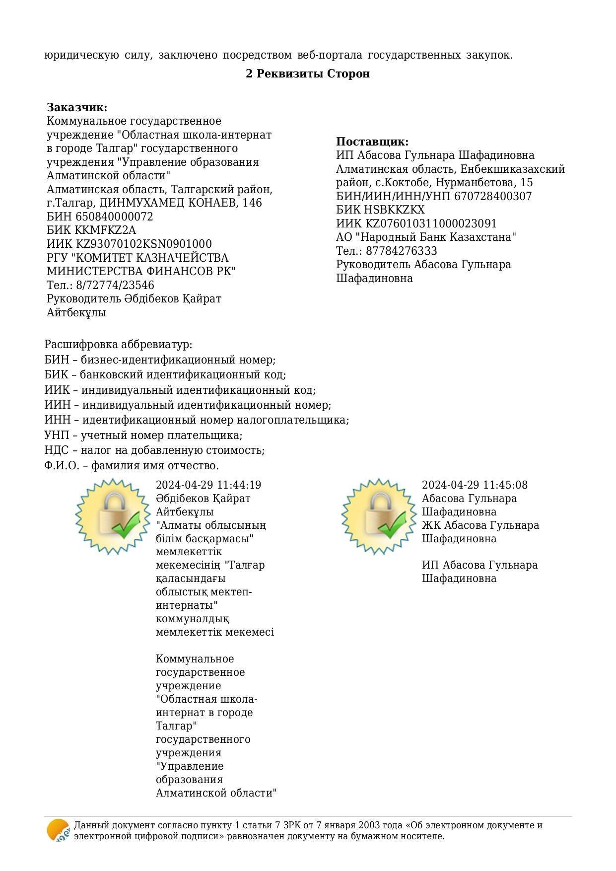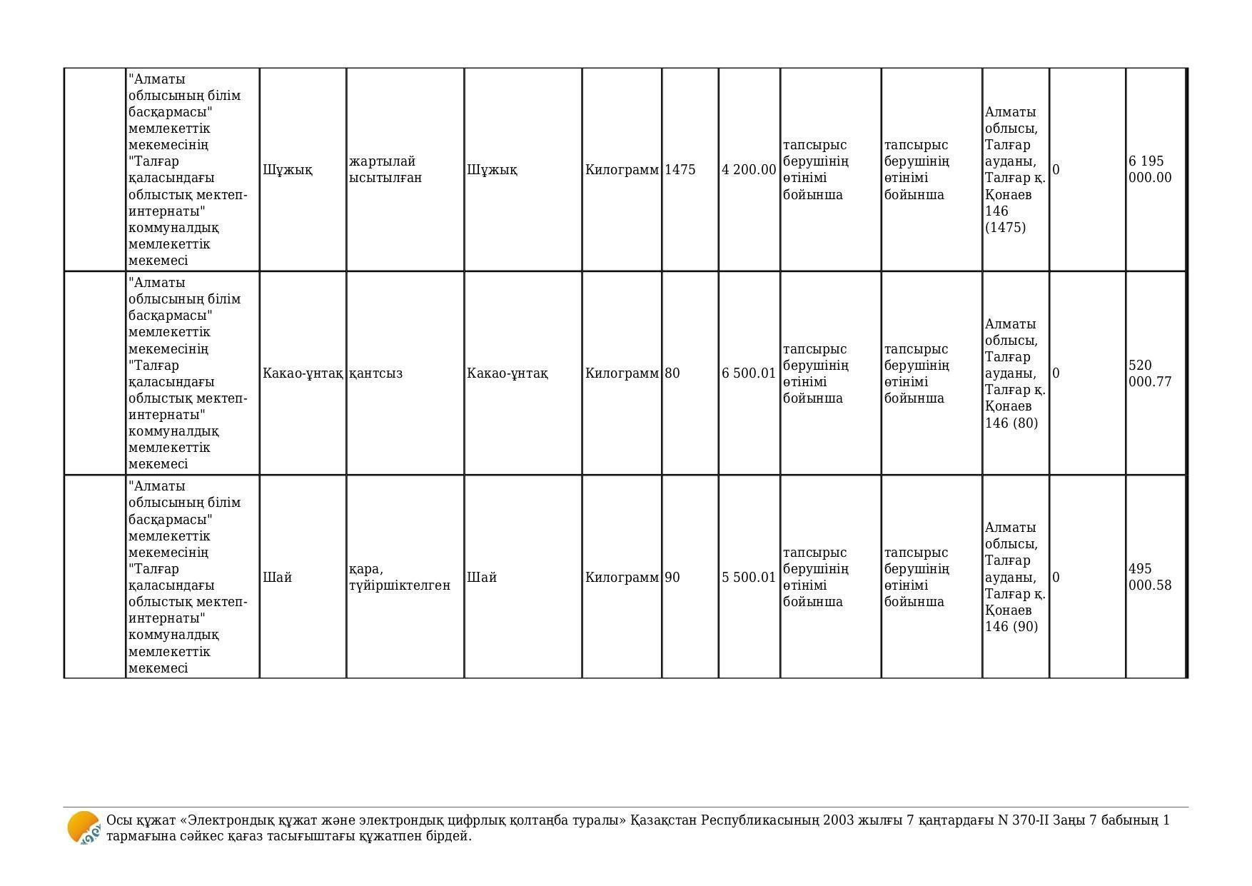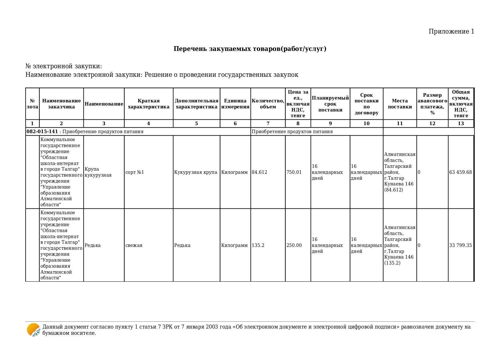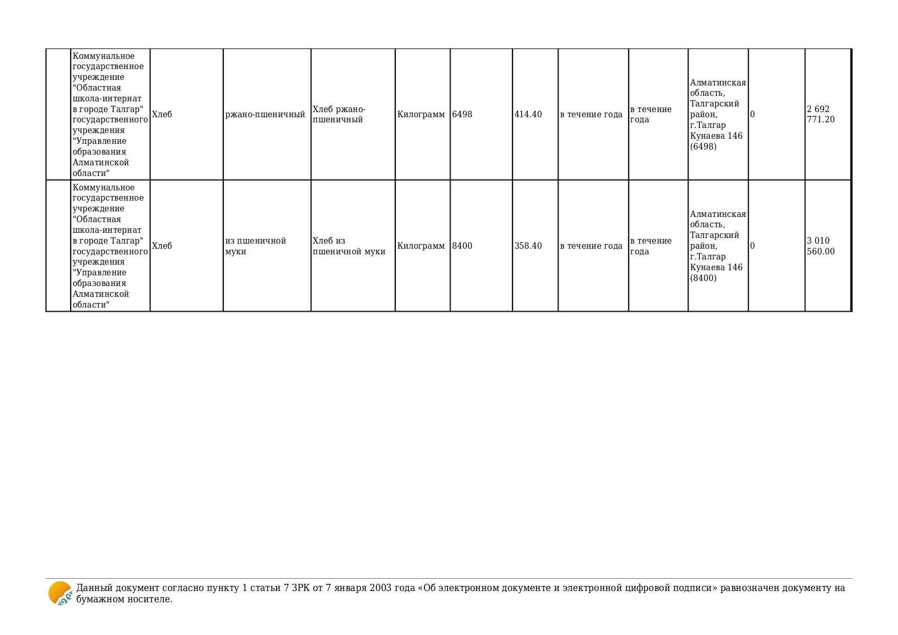 Тауарларды мемлекеттік сатып алу туралы шарт » Талғар қаласындағы облыстық мектеп-интернаты