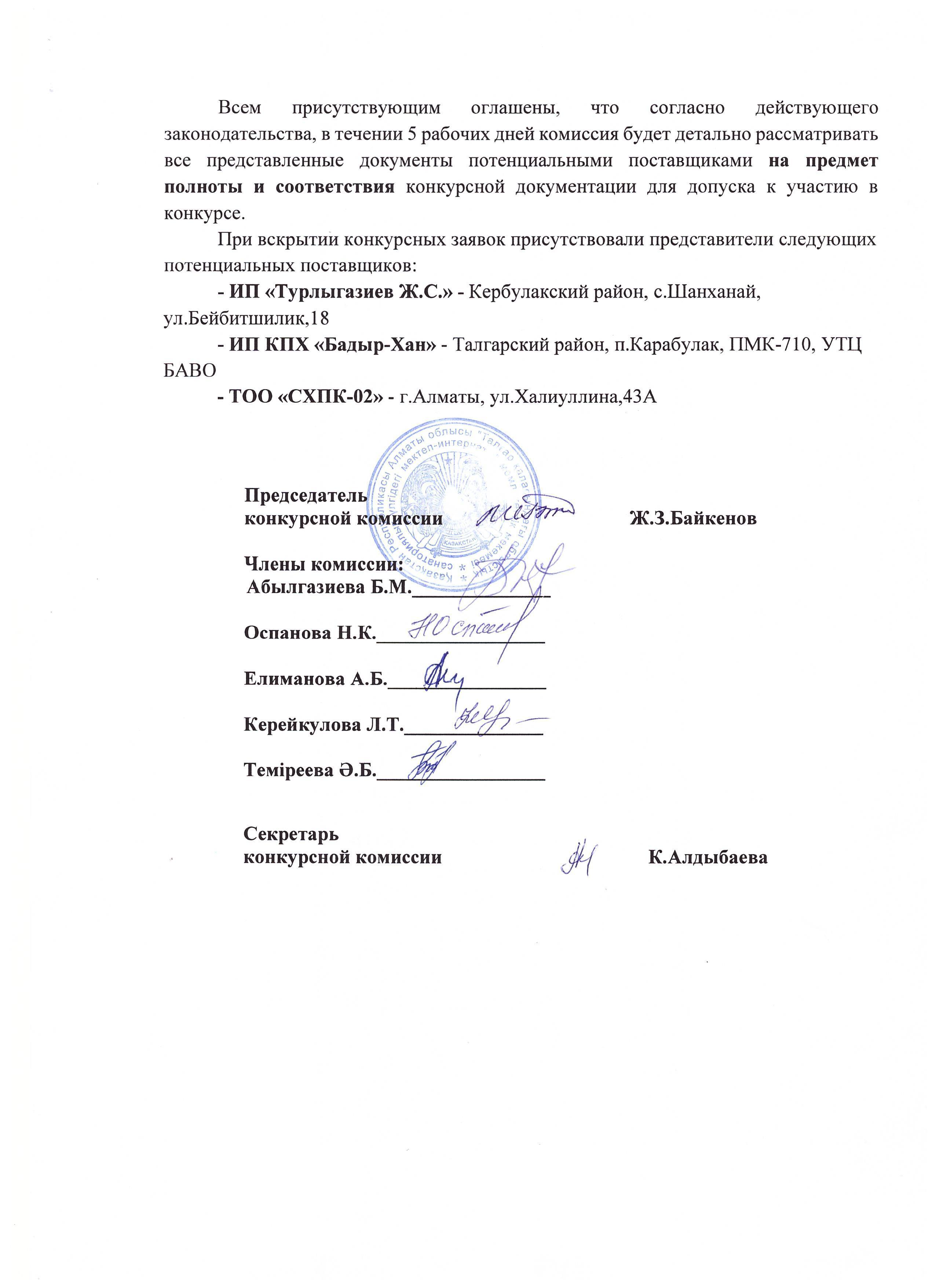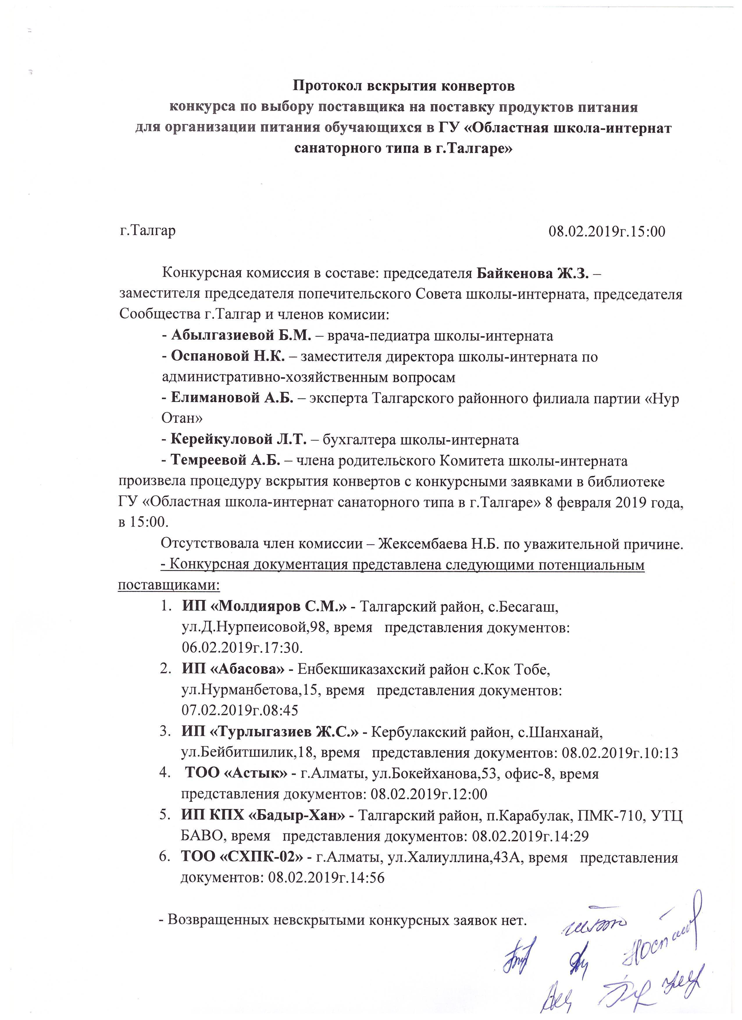 Конкурс на питание - протокол вскрытия конвертов » Талғар қаласындағы облыстық мектеп-интернаты